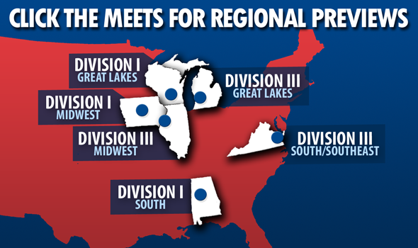 That Great Lakes Region drama is only one storyline this weekend taking place around the country. In this edition of The Warm-Up Lap, Division I regionals in the Great Lakes, Midwest and South regions get in-depth looks, as do Division III’s Great Lakes, Midwest and South/Southeast regions. Today’s installment is the second part of a three-section series previewing all the regional championships this weekend. Yesterday’s covered meets on the East Coast, with the next focusing on the western half of the U.S.