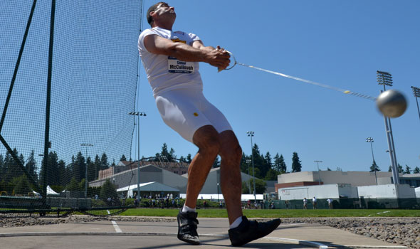 The top weight thrower and hammer thrower of the 2012 regular seasons, McCullough sealed the deal with a massive heave of 252-4 (76.91m) in the third round, moving him to the No. 5 spot on the all-time NCAA Championships performers list (he came up four inches short of moving up to No. 6 on the all-time collegiate list).