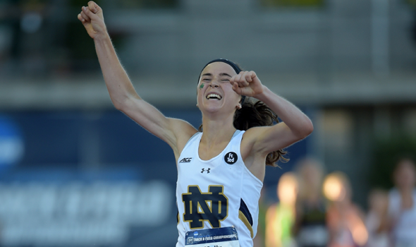 Through 8400 meters, it looked like the women’s 10k was going to be a classic sit-and-kick, with a pack of twelve women within half a second of each other and clicking off comfortable 81s and 82s. Then defending champ Emma Bates threw in what will be remembered as one of the most infamous surges in meet history. The first lap of her last mile was covered in 66.41 seconds, putting her way ahead of the field. Only Notre Dame’s Molly Seidel and Oregon’s Waverly Neer were within eight seconds of Bates—at that pace, a massive gap of forty meters or so. Bates’s move blew up the field. Unfortunately for Bates, it blew her up too. Her last five laps were 80.84, 66.41, 84.22, 89.07, and 86.64. Seidel measured her effort better than anyone else in the field did, gradually covering Bates’s move and giving herself a huge cushion ahead of Scott. Scott and Seidel ran essentially the same last lap—69.89 for Seidel, 69.93 for Scott—but Seidel started that lap with a seven and a half second lead. The Notre Dame junior knew her pace better than anyone else in the field did, and it paid off with a stunning national title.