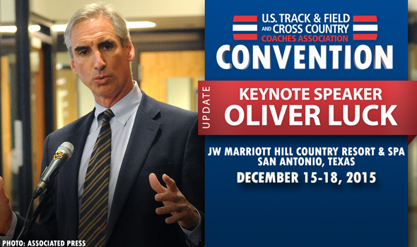 NEW ORLEANS – Oliver Luck, the NCAA’s Executive Vice President of Regulatory Affairs, will deliver the keynote speech at the opening session of the 2015 U.S. Track & Field and Cross Country Coaches Association (USTFCCCA) Convention in San Antonio, Texas, this December.