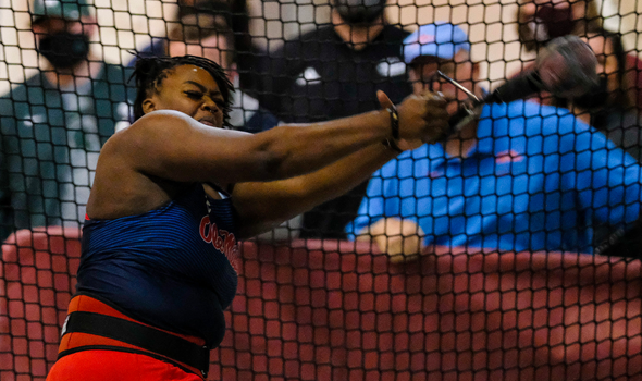 Taiwo launched the weight into orbit on her second attempt of the competition. Not only did it vault her into some elite company on the world stage, it was the best throw by a collegian since 2008 and only trails record holder Riley at 25.56m (83-10¼) – and two of her other throws – in collegiate history.