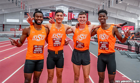 For starters, Oklahoma State’s men demolished the collegiate record on the same track that Oregon set it two years earlier. The Cowboy quartet of Fouad Messaoudi (2:49.49), DJ McArthur (46.82), Hafez Mahadi (1:47.27) and Ryan Schoppe (3:52.84) combined to get the baton around in 9:16.40, crushing the previous best of 9:19.42 established by Oregon in 2021.