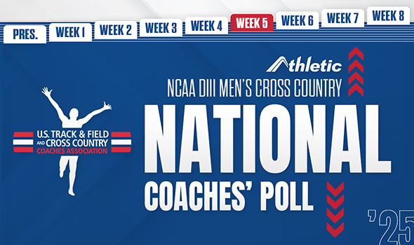 The newest edition of the 2025 NCAA DIII Men’s Cross Country National Coaches’ Poll was released Tuesday by the U.S. Track & Field and Cross Country Coaches Association (USTFCCCA), just ahead of a major weekend of competition. All USTFCCCA polls and rankings are presented by AthleticNET.