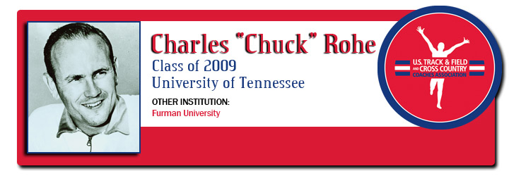 Regarded as the “Father” of track and field in the South, Charles “Chuck” Rohe was the link between football players and track and field athletes while at Tennessee. He began his storied career as the Head Coach at Hattiesburg High School, then moved on to Furman University before taking over as the men’s Head Coach at the University of Tennessee. At Tennessee, Rohe led the men’s team to 21 straight cross country and track & field SEC Conference Championships. He had six top-ten NCAA Championship finishes, and he coached three NCAA Individual Champions, 53 SEC Indoor event champions, and 49 SEC Outdoor event champions. Rohe was named the 1967 NCAA National Coach of the Year.