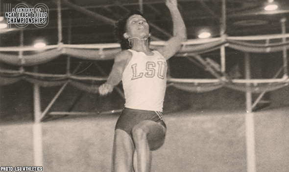 Meanwhile, Echols continued earning points for the Lady Tigers, finishing third in the 100 (behind future Olympic gold medalists Gwen Torrence of Georgia and Gail Devers of UCLA) and leading off the second-place 4×100 relay team. Echols ended up with a team-high 18 points as LSU won its first outdoor women’s team title. LSU, of course, would win many more, and their 11-year streak of victories (1987-97) is the longest in meet history, men or women.